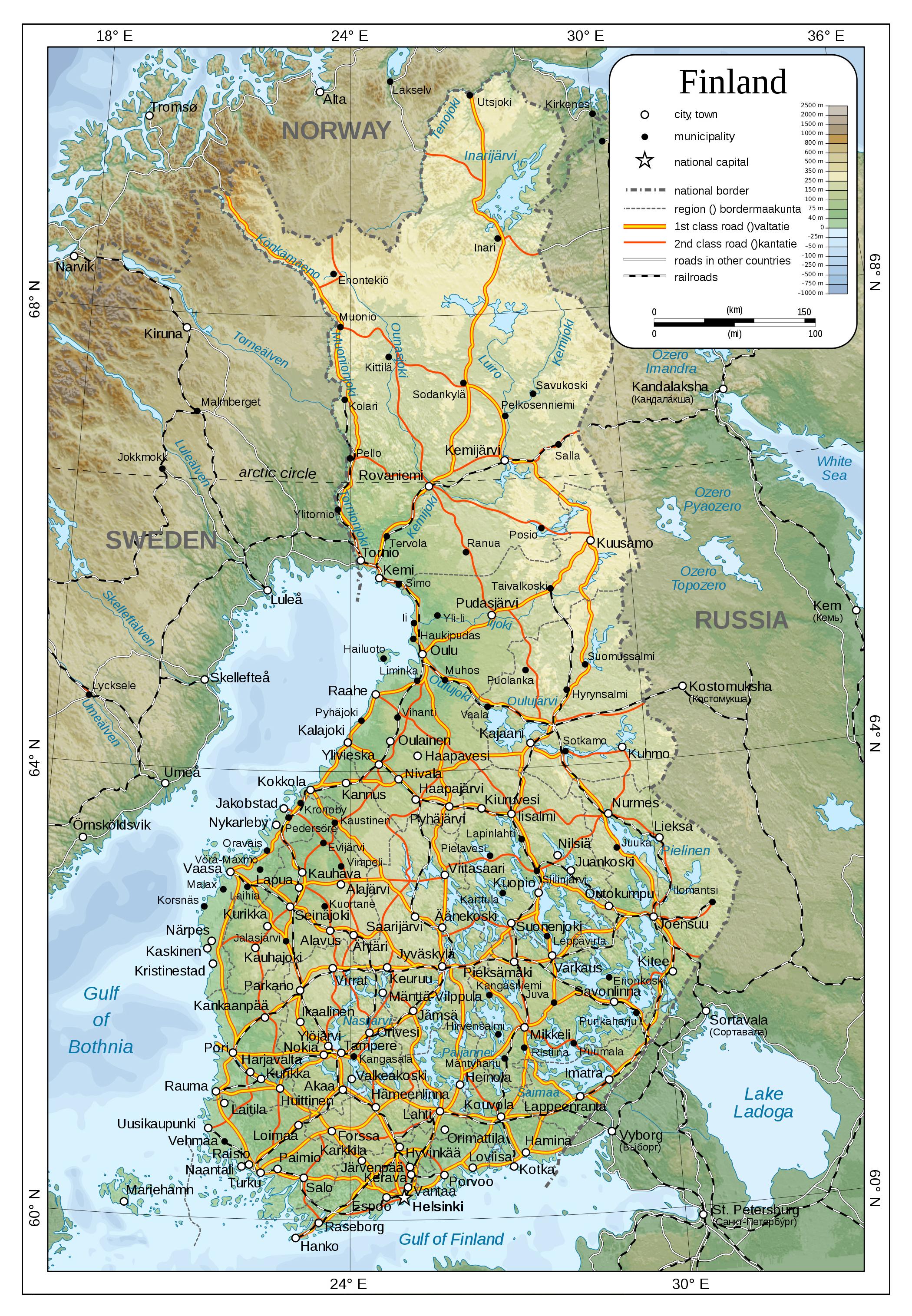 Harta fizică din Finlanda